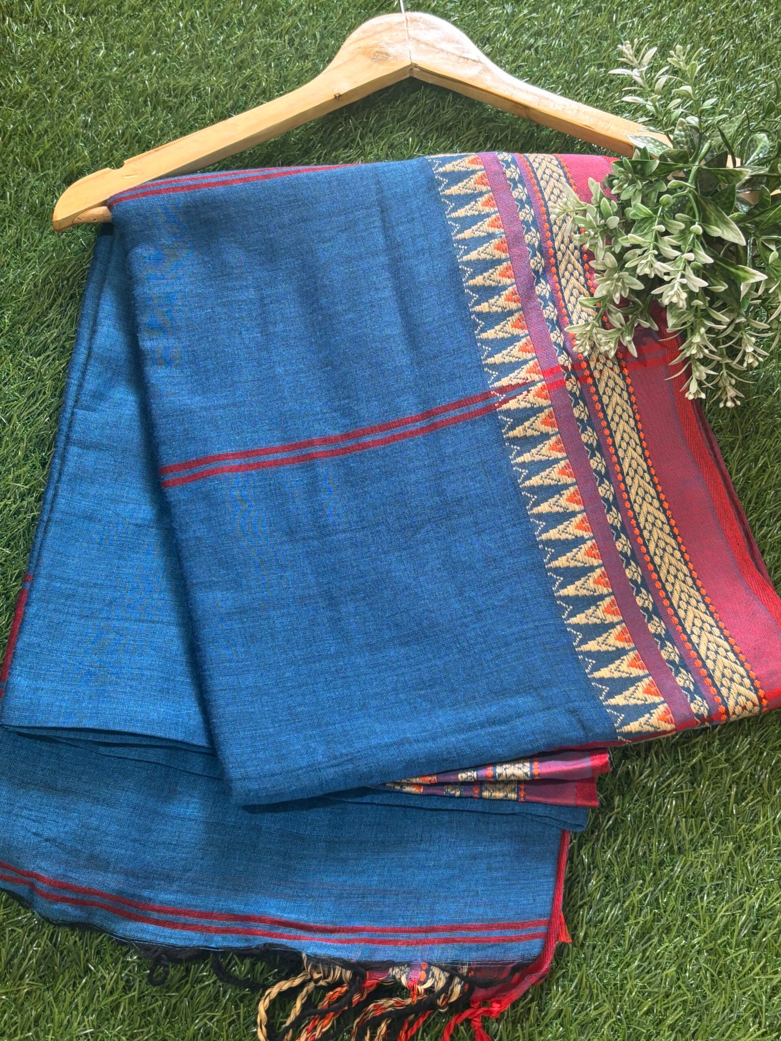 Crafted for women who value comfort and style, this blue Khadi cotton is a perfect blend of tradition and modernity. Its pure, handwoven texture ensures a breathable and skin-friendly experience for all-day wear.
