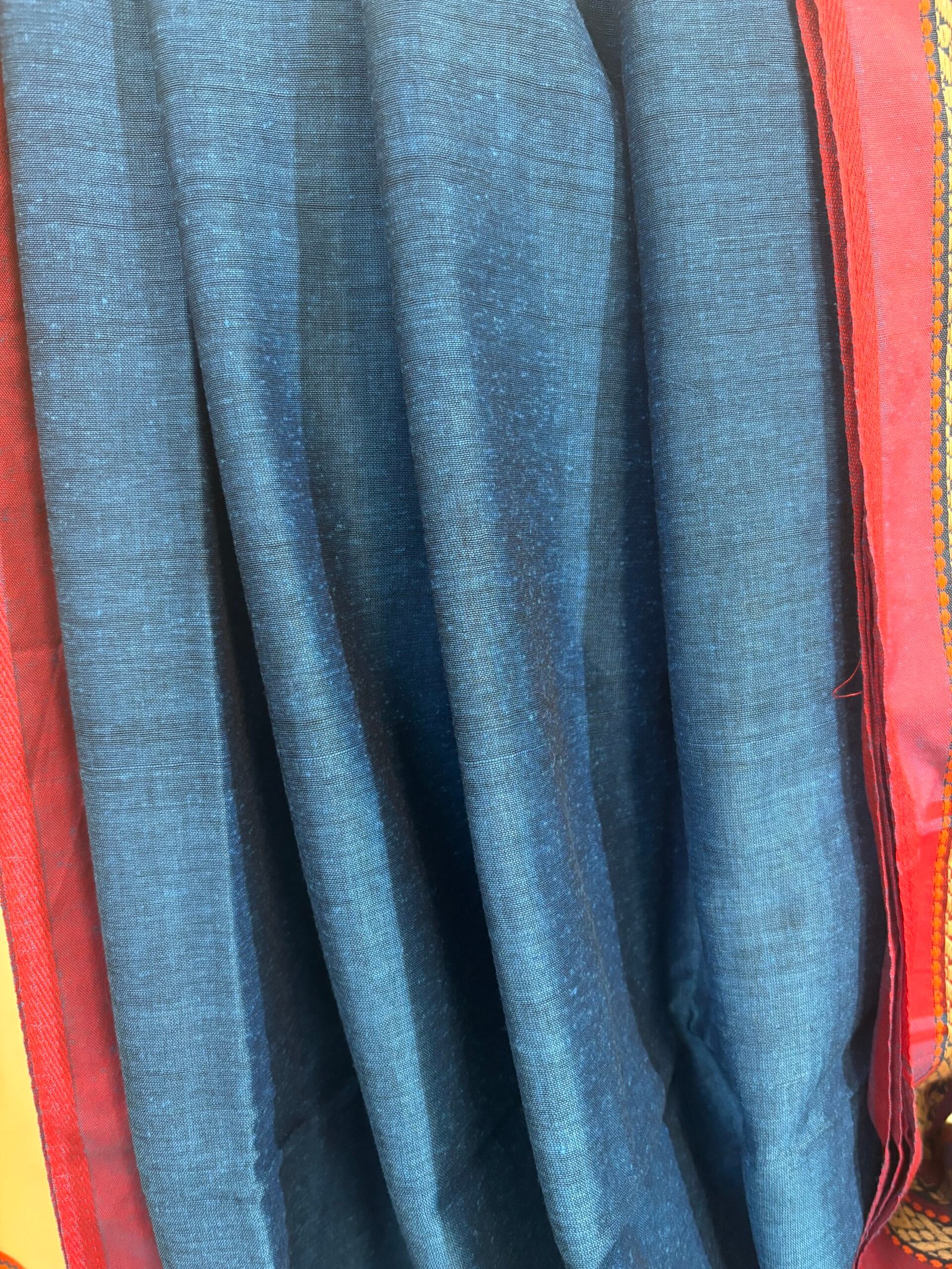A versatile choice for various occasions, this blue Khadi cotton can be tailored into stunning outfits like sarees, kurtas, or dresses. Elevate your wardrobe with its timeless charm and vibrant color.