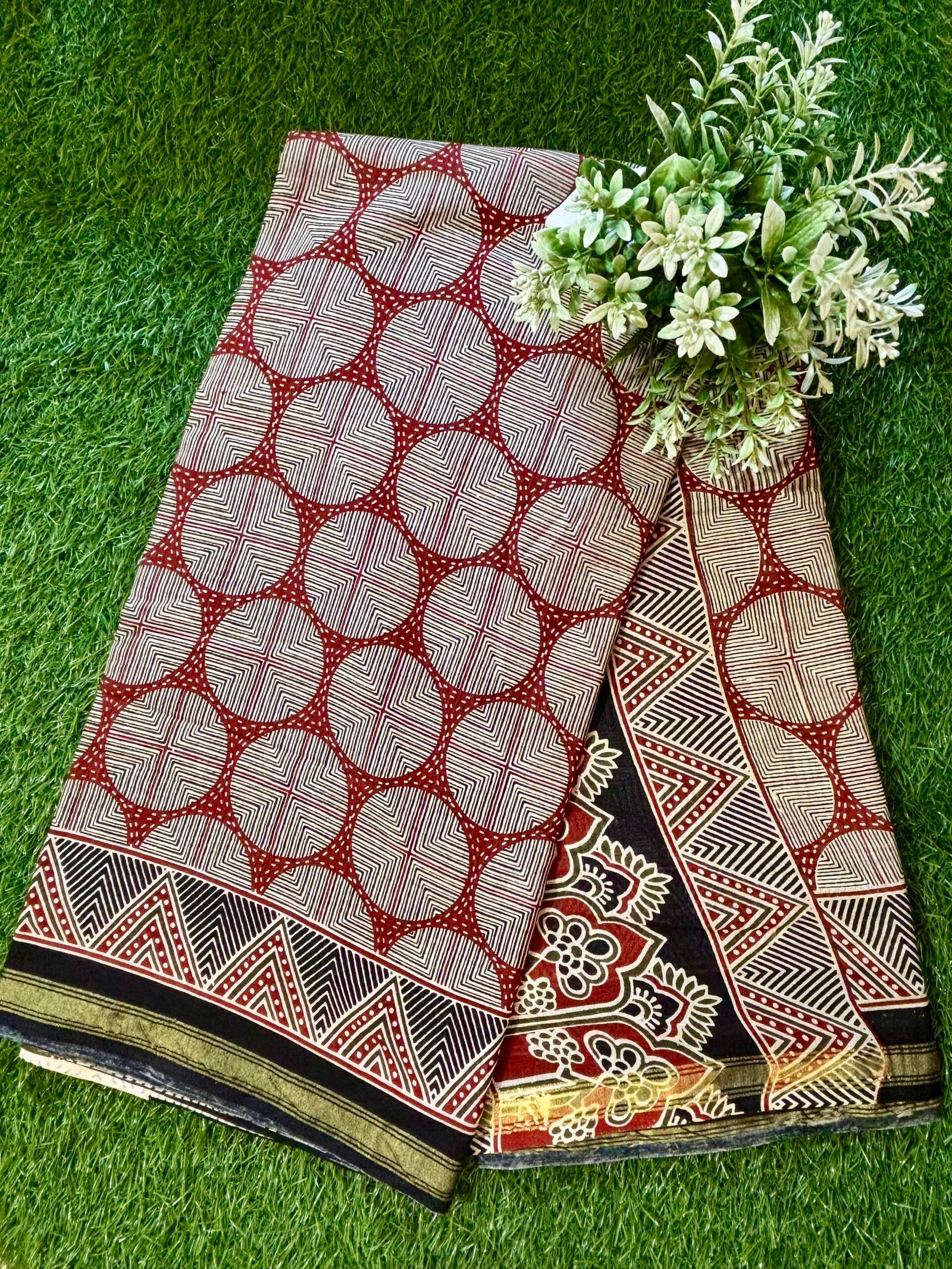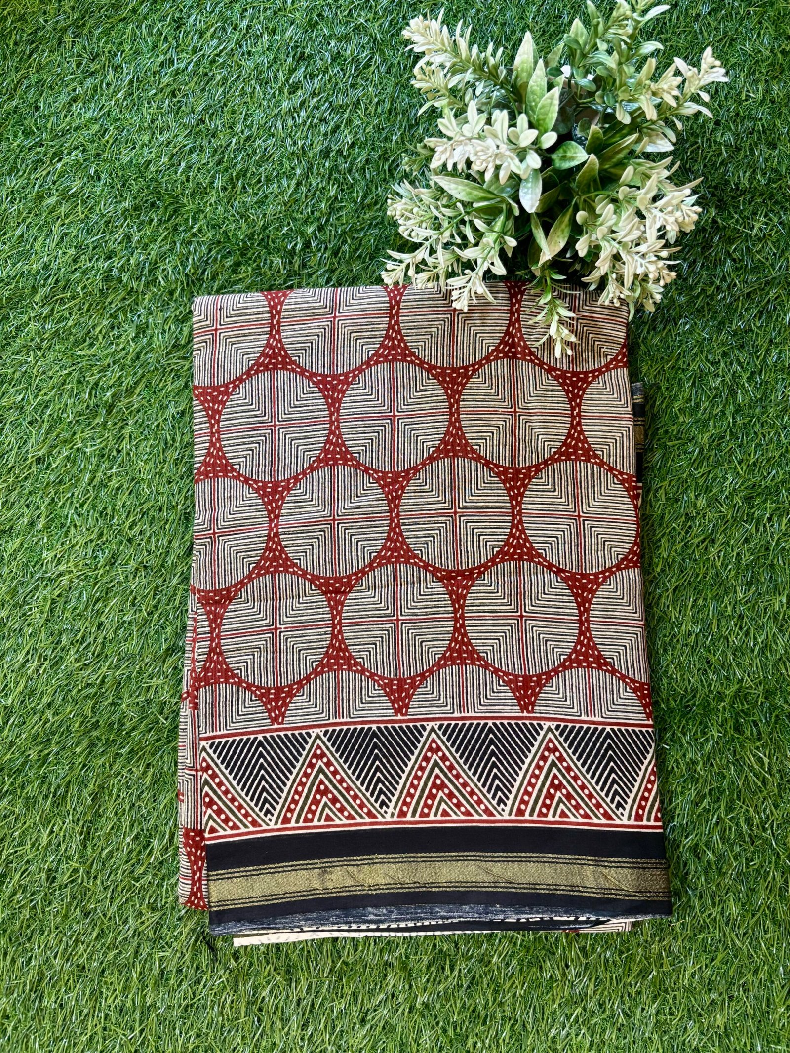 SareesChakra Rekha Jari Border Malmal Cotton