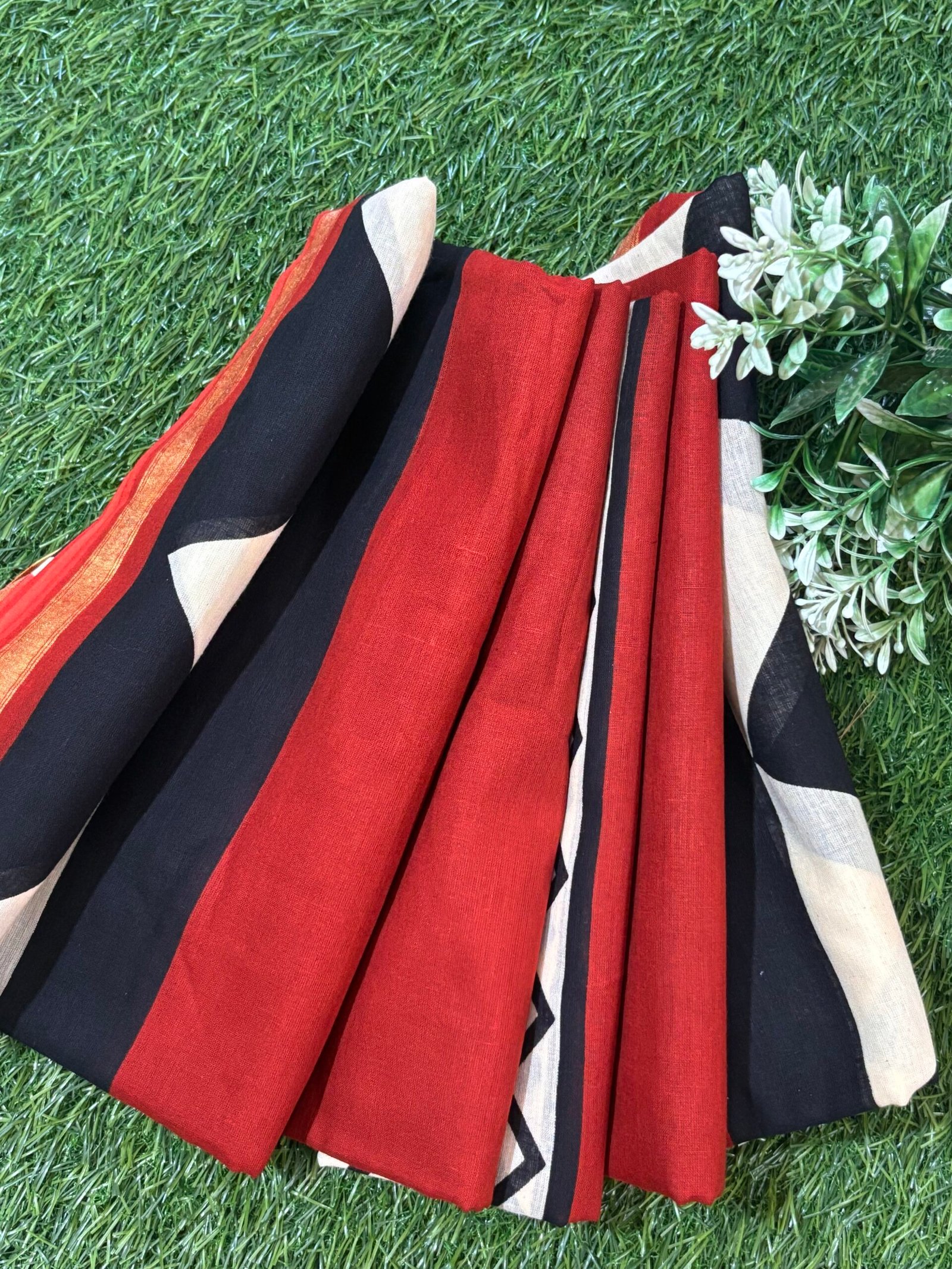 Whether you’re dressing up for a celebration or seeking everyday elegance, this cotton fabric caters to all your needs. Its formal appeal, paired with the timeless jari border design, guarantees a versatile and chic outfit. Make this a staple in your wardrobe today!