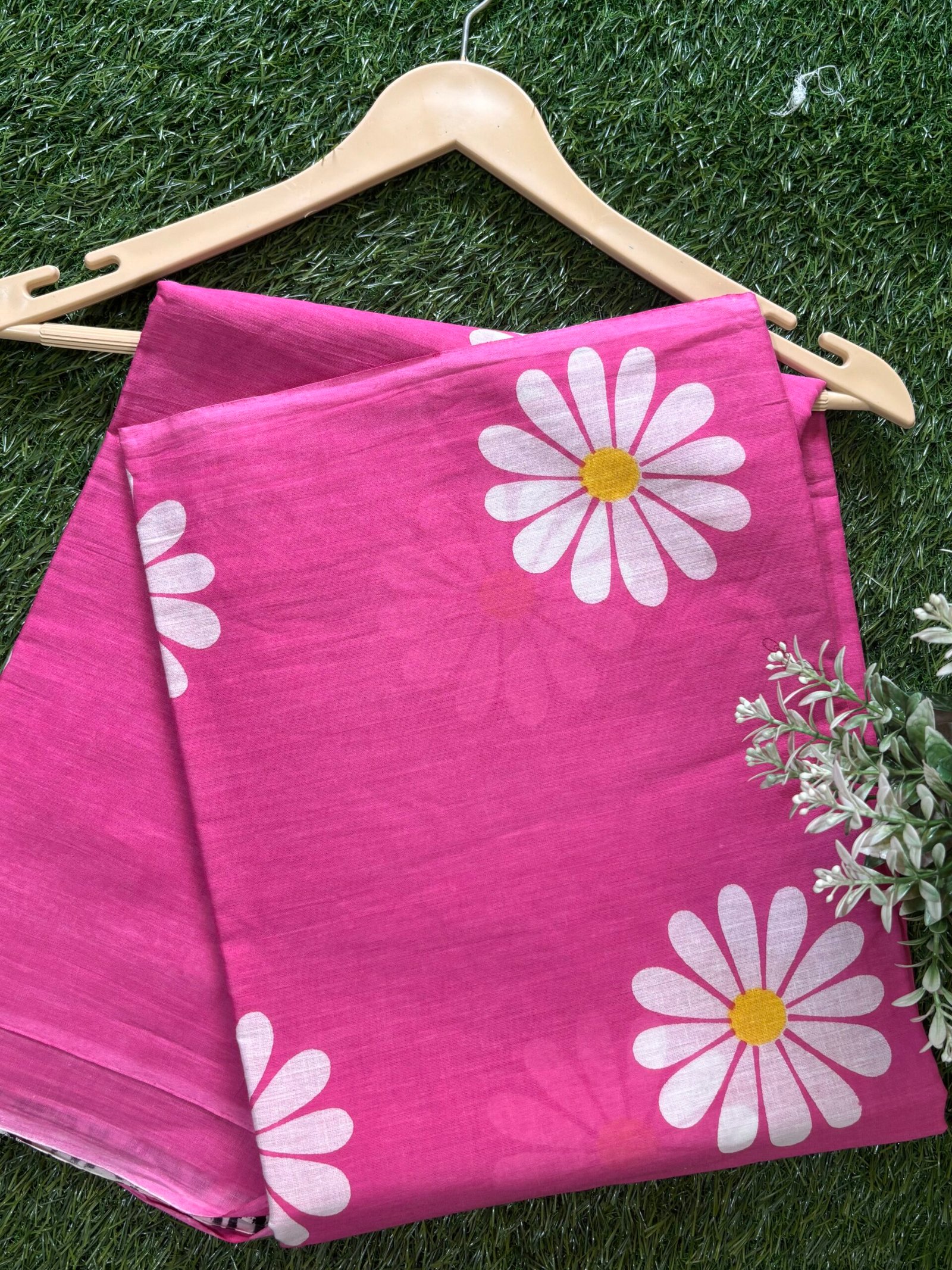 The hand-printed designs on this saree reflect the essence of cultural heritage, handcrafted to perfection by skilled artisans. Each print tells a story woven into the fabric, making it not just an outfit but an artistic statement. Choose this saree to elevate your wardrobe with authenticity, creativity, and a dash of individuality. Perfect for pairing with a classic blouse and statement jewelry, it’s versatile enough for any occasion.