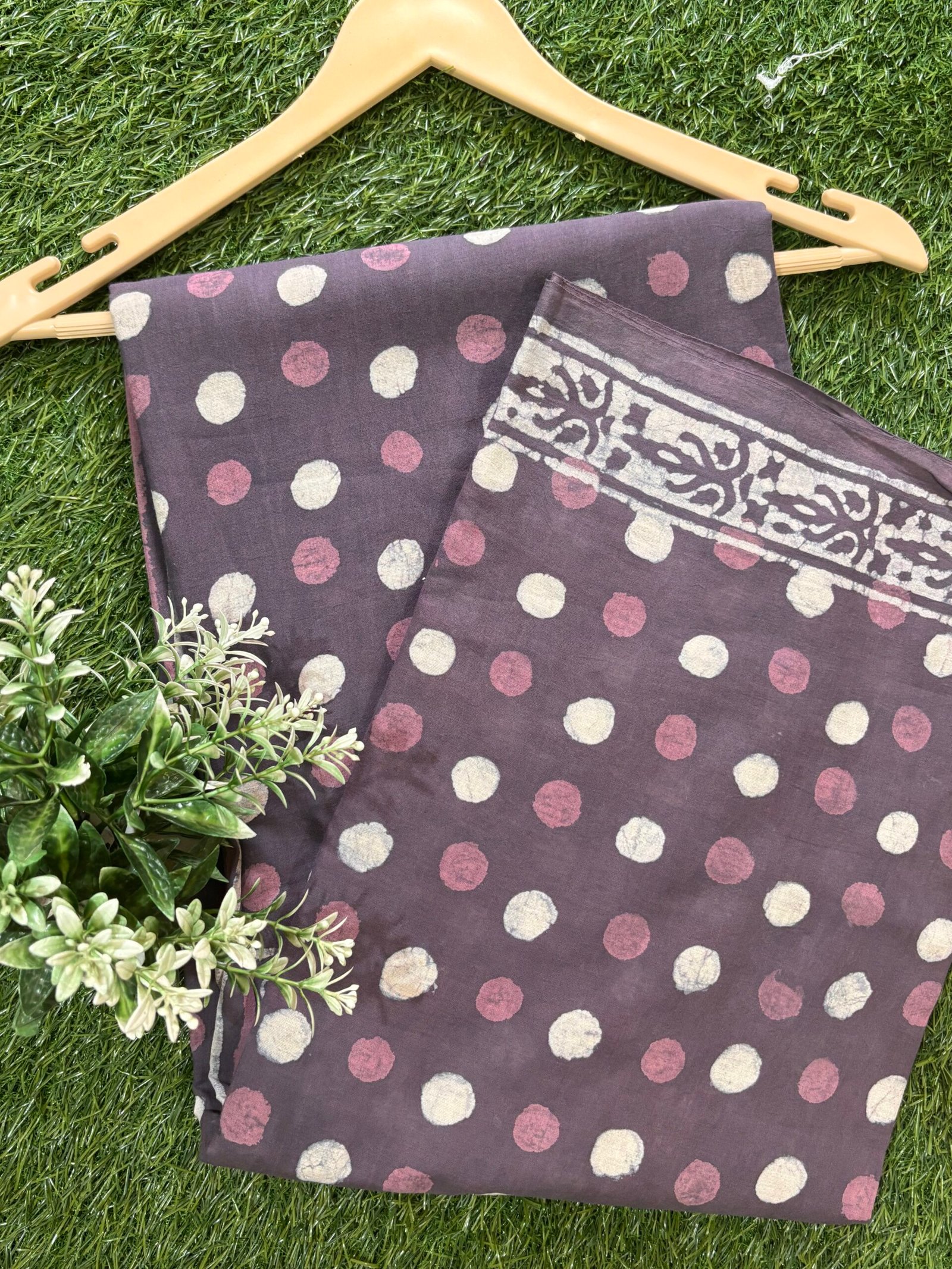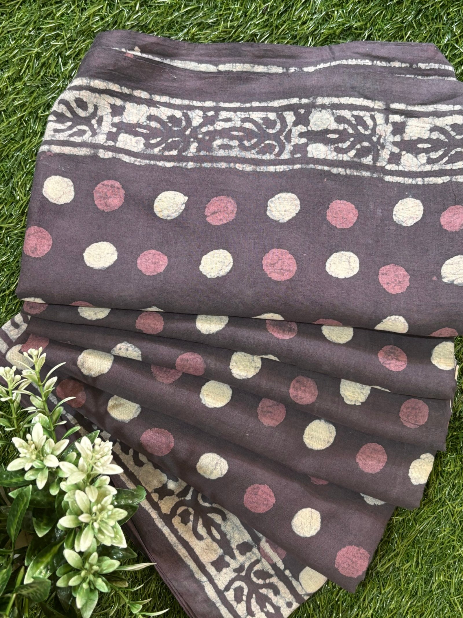 The subtle mocha tone paired with intricate bondhi patterns effortlessly enhances your wardrobe. Whether you’re dressing up for a casual outing or an evening event, this fabric delivers a timeless charm combined with versatile usability.