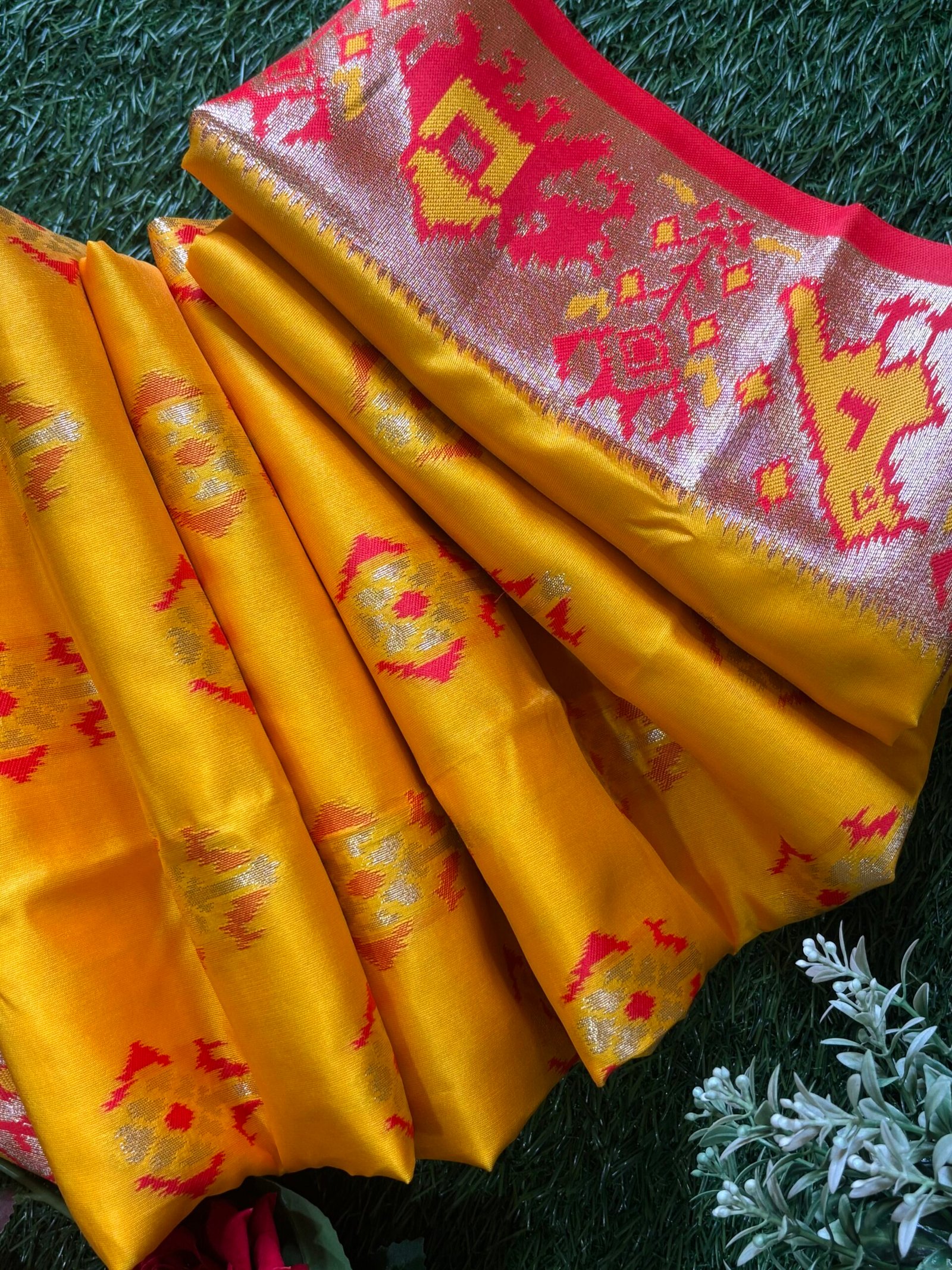 Experience the timeless charm of our Yellow Patola Silk saree, designed exclusively for women who cherish regional traditions with a modern touch. Its vibrant yellow hue and intricate patterns make it a standout choice for cultural events, festivals, or any special occasion.